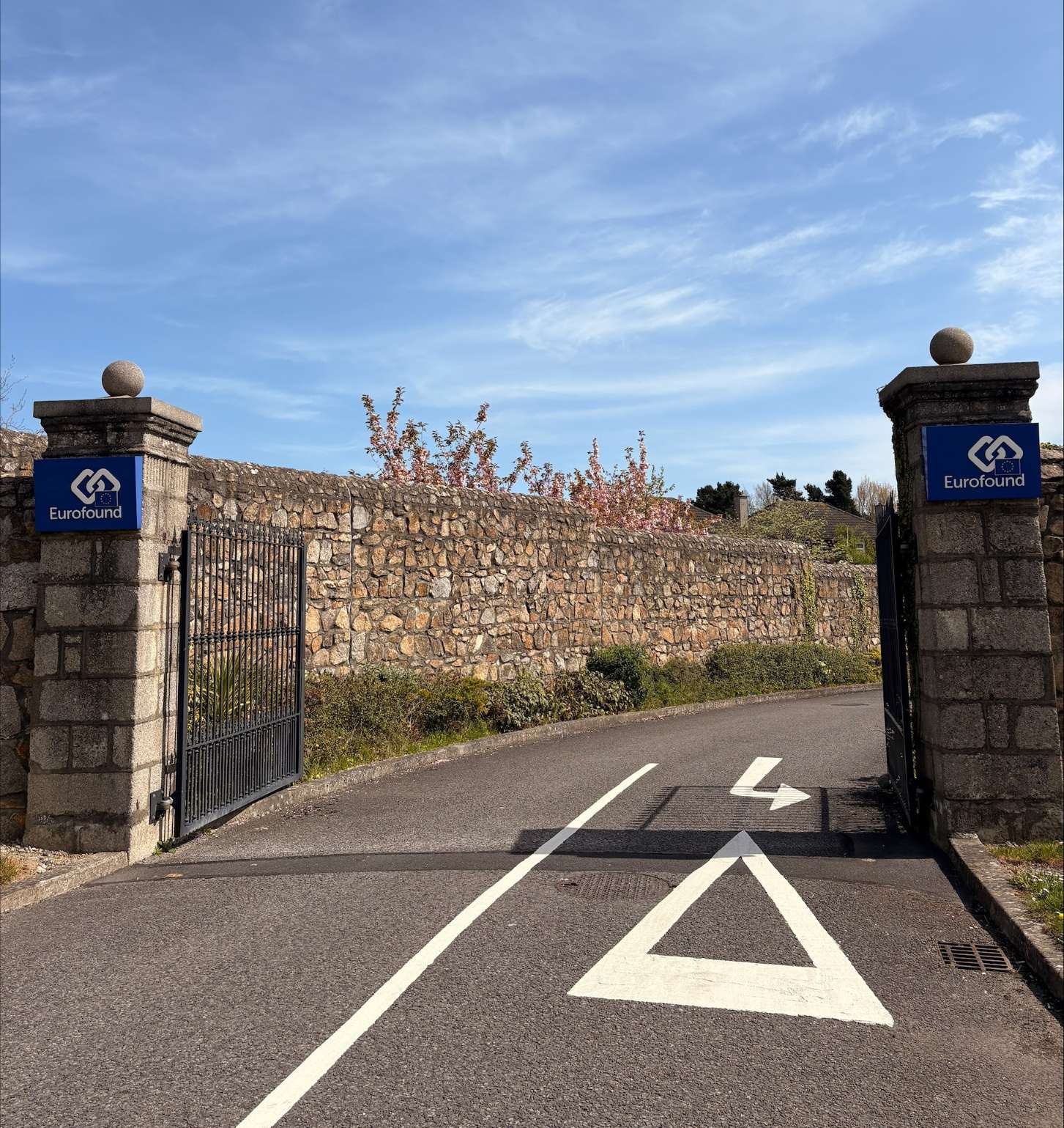 Η καλύτερη διαδρομή είναι να ταξιδέψετε στον κεντρικό δρόμο N11, μέσω Donnybrook, Stillorgan και Foxrock (κατεύθυνση Bray). Φτάστε στην κύρια διασταύρωση που υποδεικνύεται Ballybrack/Killiney/Dalkey, παραμένοντας στην αριστερή λωρίδα και στρίψτε αριστερά στα φώτα στην οδό Wyattville. Οδηγήστε μέσα από το πρώτο σετ φώτων και στο δεύτερο σετ κάντε αναστροφή, ώστε τώρα να επιστρέψετε στην οδό Wyattville προς την αντίθετη κατεύθυνση. Μετακινηθείτε στην αριστερή λωρίδα και ετοιμαστείτε να σταματήσετε λίγο πριν την επόμενη διασταύρωση (150 μέτρα) και στρίψτε αριστερά στην κύρια είσοδο του Eurofound (πέτρινες κολώνες).(opens in new tab)This link opens in a new tab