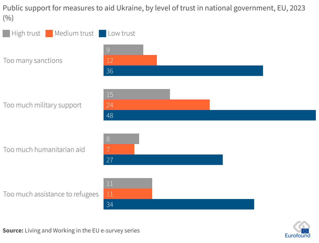 Figure 33: Public support for measures to aid Ukraine, by level of trust in national government, EU, 2023 (%)