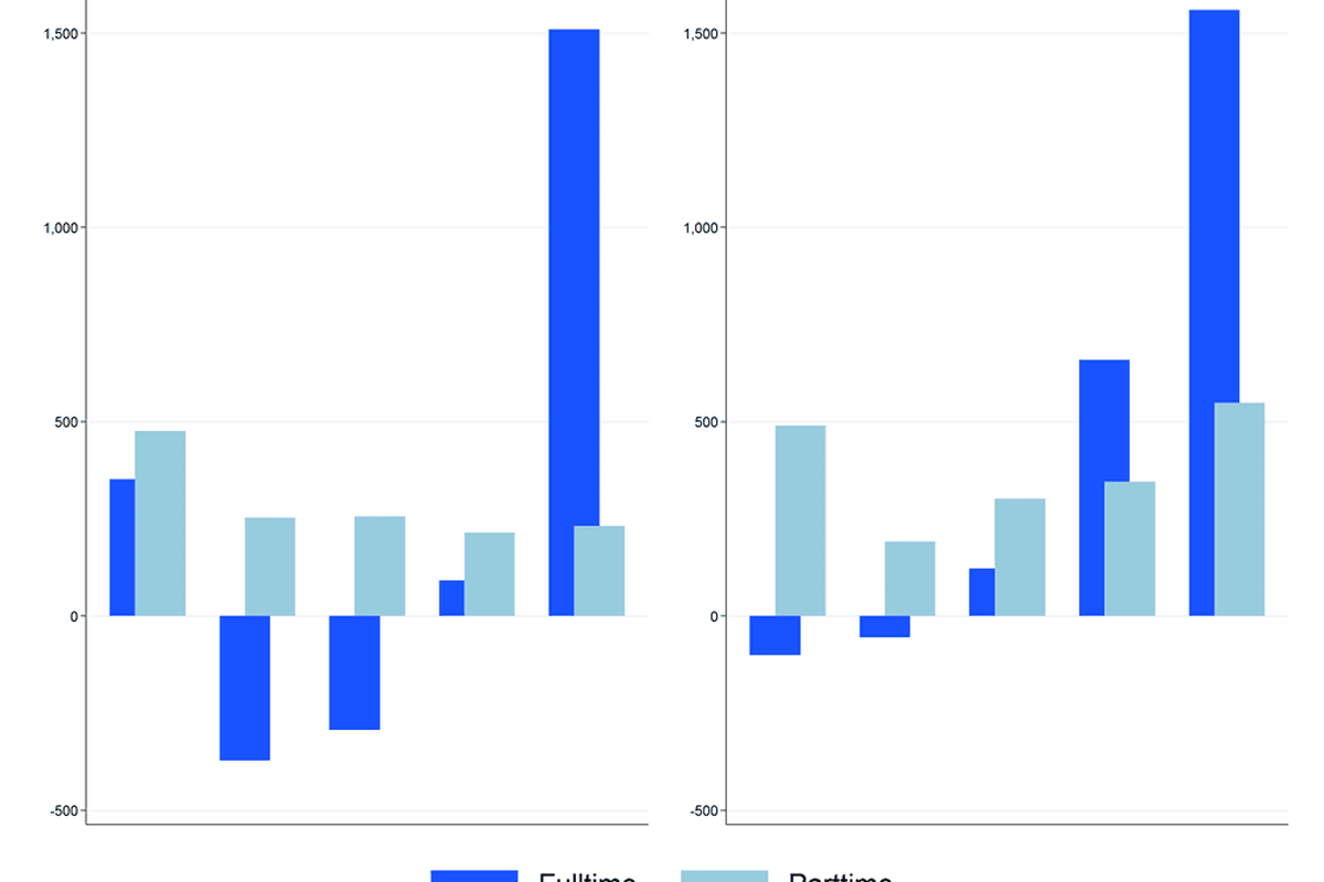 For men, part-time employment growth has been notable in many jobs which to date have been mainly female-employing such as retail sales assistants and personal service workers in the food/beverages sector. One potential explanation is that male workers who lost their jobs in the manufacturing and construction sectors during the crisis have subsequently taken up lower-paying service jobs, including jobs in the ‘gig’ economy. At the other end of the wage distribution, there have been increasing numbers of part-time professionals in the health and education sectors and, in line with the overall gender share of employment in these sectors, these have been primarily female jobs.
